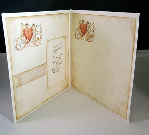 I design the inside using scraps from the same paper (as I usually do) and include a space for a personal message.